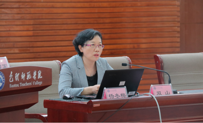 教育部全国普通高校师范类认证专家杨冬梅教授做师范专业认证现场考查工作汇报。杨冬梅教授详细介绍了专家进校考察工作情况、从几个方面分享现场考查认证感受,分析认证可能存在的薄弱点与短板。她强调,师范类专业认证专业学院是核心,但需要学校、专业学院、老师及学生上下联动,全员参与,各职能部门内部协同。她提出,要注重内涵式发展和质量文化建设的研究。挖掘专业的地方性、文化性校本特色;注重专业发展的需求、调研和分析论证,突出中小学的协同育人,科学合理进行达成度评价等。要对标查缺补漏,形成常态化机制。通过学校发力,干部尽力,老师给力,形成合力,以确保我校完成师范类专业二级认证。