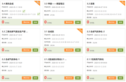 本课程应用超星学习通平台+微信群开展教学。采用录屏的方式进行授课,在学习通平台对应章节中建立任务点,任务点包括课件和录屏视频。由于化工生产工艺流程十分复杂,具有多步流程多、工艺线路多、逻辑性强、设备之间相关性强等特点,讲解过程以课件中的动画效果为辅助,力求使每一步流程、每一线路工艺清晰明了的呈现在学生面前。每节课后留有习题,利用微信群进行答疑和交流,督促学生进行线下同步复习。