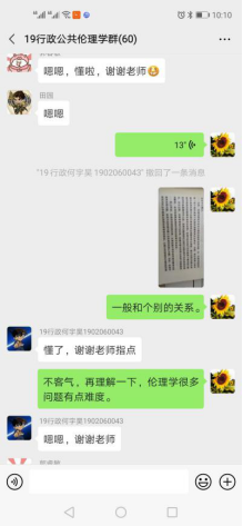 感谢老师为我们提供了丰富的教学资源和很多经典案例,学习公共伦理学让我对道德有了更全面的认识,让我知道伦理道德不止是停留在理论层面,它与我们的生活联系紧密,让我们客观理性的去认识和解读生活中的道德现象和道德境遇,在面临道德选择时做出合理的取舍。