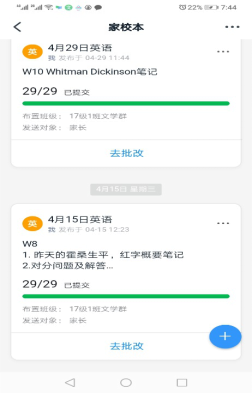 课后:钉钉群家校本布置作业,逐个反馈评价,在下次上课时,点评有代表性的学生作业,以同侪效应激励其他学生更好的完成作业。
