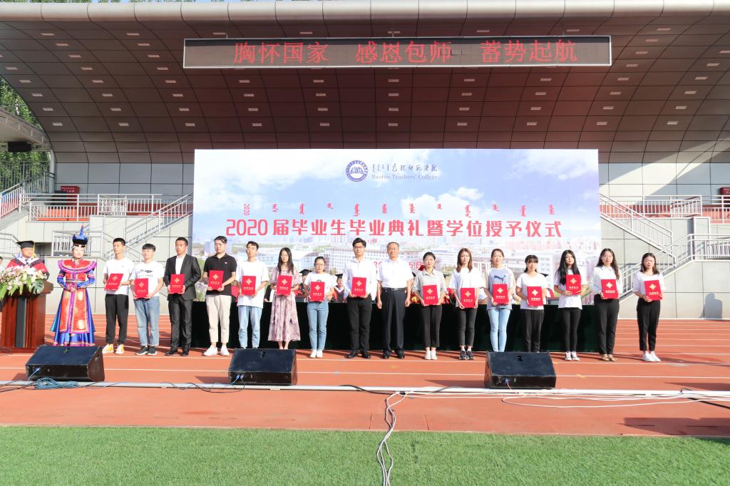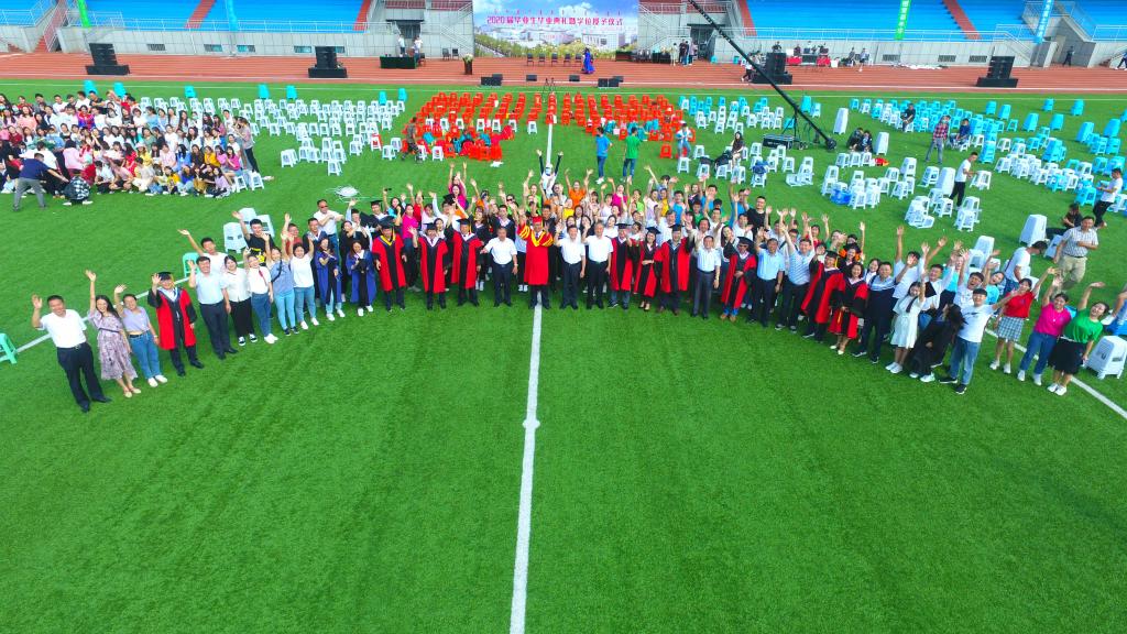 “火红的七月,亮丽的青春”。7月5日清晨,包头师范学院2020届毕业生毕业典礼暨学位授予仪式在田径运动场上举行。因疫情影响,今年的毕业典礼较为特殊,没有像以往一样在会堂举行,全体毕业生们呼吸着新鲜的空气,沐浴着清晨的朝阳,闻着花草的芬芳,就坐在绿茵场上,线下分散集会,线上云端共享,共同上好“大学的最后一课”,为大学生涯画上完美的句点。