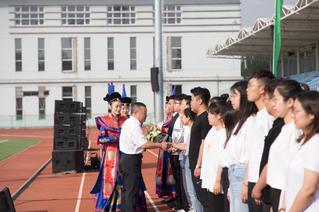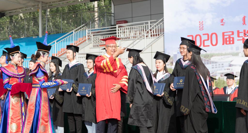 包头师范学院乌兰牧骑的师生们为毕业生们精心准备了精彩的歌曲演唱会。“同桌的你”、”少年“、“长大后我就成了你”、“匆匆那年”、“光阴的故事”和“我不想说再见”等一首首经典的旋律引发了毕业生们的强烈共鸣。大家纷纷跟唱,感怀大学时代美好的青春时光,深情表达对母校的感激之情、对老师和同学的眷恋之情,以及对美好未来的憧憬。