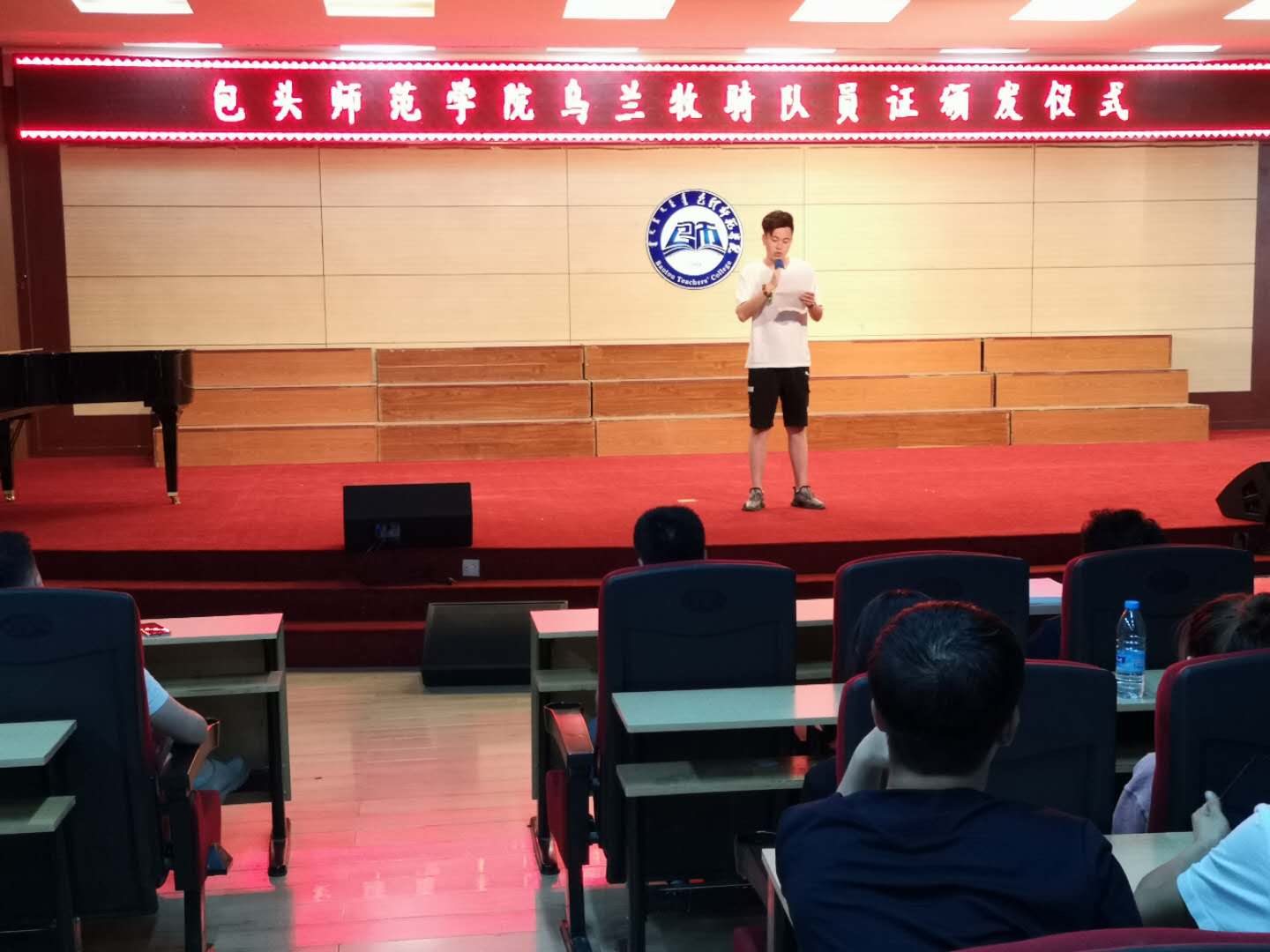 7月4日下午,包头师范学院乌兰牧骑队员证颁发仪式在音乐楼二楼博艺厅隆重举行,校党委委员、宣传部部长史瑜,音乐学院院长、校乌兰牧骑队长崔东伟,音乐学院副院长贾晓光、音乐学院部分专业教师及近百位乌兰牧骑队员参加了仪式。崔东伟老师主持了颁发仪式。