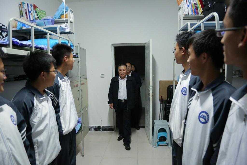 9月29日晚,校党委书记王永明带领校级领导和学院干部来到生物科学与技术学院学生宿舍看望、慰问2020级的新生,了解学生需求,现场为学生排忧解难。