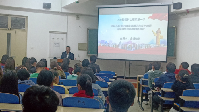 10月2日,院长金桩教授走进2020级少数民族预科班,以《坚定不移推进国家通用语言文字教育,铸牢中华民族共同体意识》为题,为马克思主义学院2020级少数民族预科学生和2020级硕士研究生讲授了“思政第一课”。
