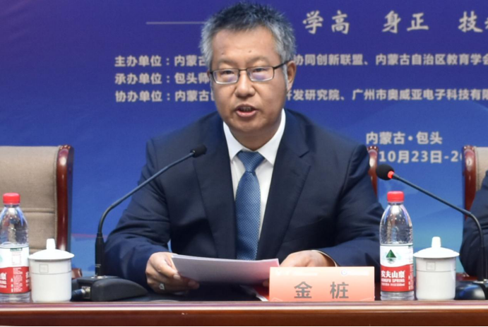 开幕式上,包头师范学院院长金桩以“提升师范技能、展示师范风采”为题为大赛致辞。他代表学校对前来参赛和观摩的兄弟院校的领导、评委、指导教师和参赛选手们表示热烈地欢迎,对自治区教育厅高教处、高等教育学会、自治区教师教育协同创新联盟对本届大赛的支持和指导表示衷心的感谢。他指出:进入新时代以来,党和国家把教师队伍建设和教师教育工作提升到了前所未有的地位,教师队伍建设和教师教育工作迎来了新的发展春天,同时也给师范院校人才培养工作提出了新的更高要求。我们要主动对接经济社会发展需求,积极推进师范生培养机制改革,科学合理设定师范人才培养目标,完善师范人才培养方案,优化师范课程设置,更新教学内容,切实提高师范人才培养的目标达成度、社会适应度、条件保障度、质保有效度和结果满意度。他简要回顾了师范生教学技能大赛自举办以来取得的成效和深远影响,并总结了我校60多年来师范生培养工作对地方教育事业的影响和成就。他表示,我校承办本届大赛深感使命光荣、责任重大,相信通过本届大赛的举办,必将进一步增进我校与各兄弟院校之间的交流与了解,促进师范人才培养质量工作的有效提升,共同为自治区高等师范院校教学改革与发展做出积极的贡献。
