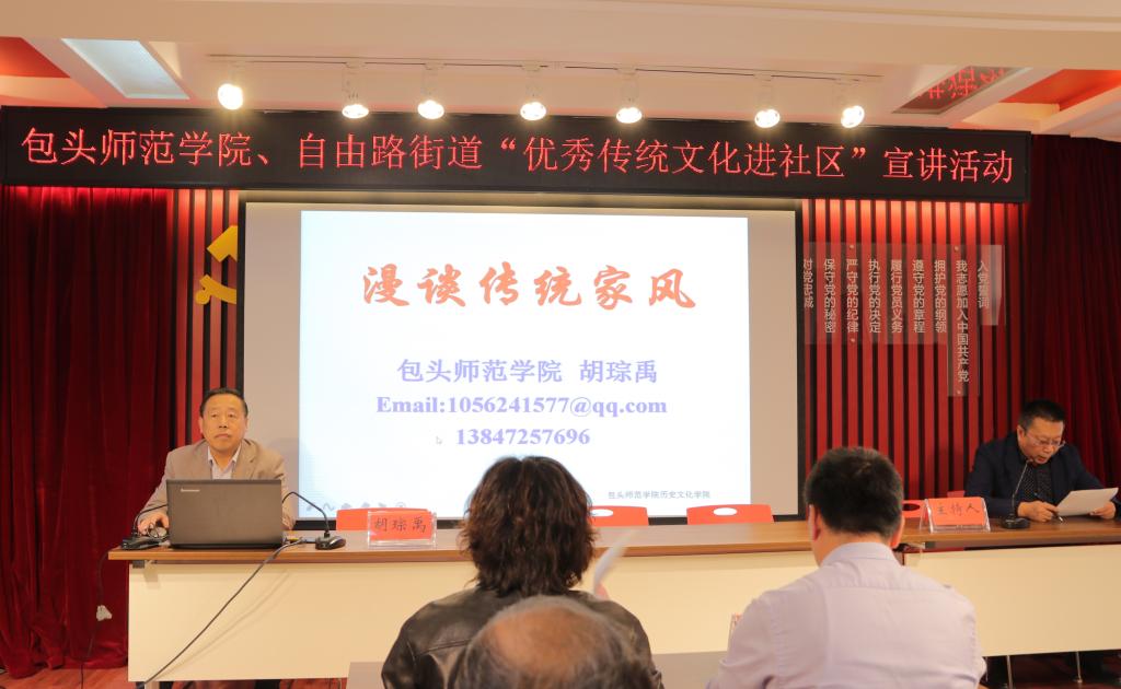 9月23日下午,我校历史文化学院院长胡琮禹老师为自由路街道办事处的工作人员及社区居民进行了《漫谈传统家风》的公益性讲座,胡院长从历史角度出发,漫谈了历史名人的良好家风,为大家介绍了如何形成优秀的家风、引起了在场听众的热烈反响。