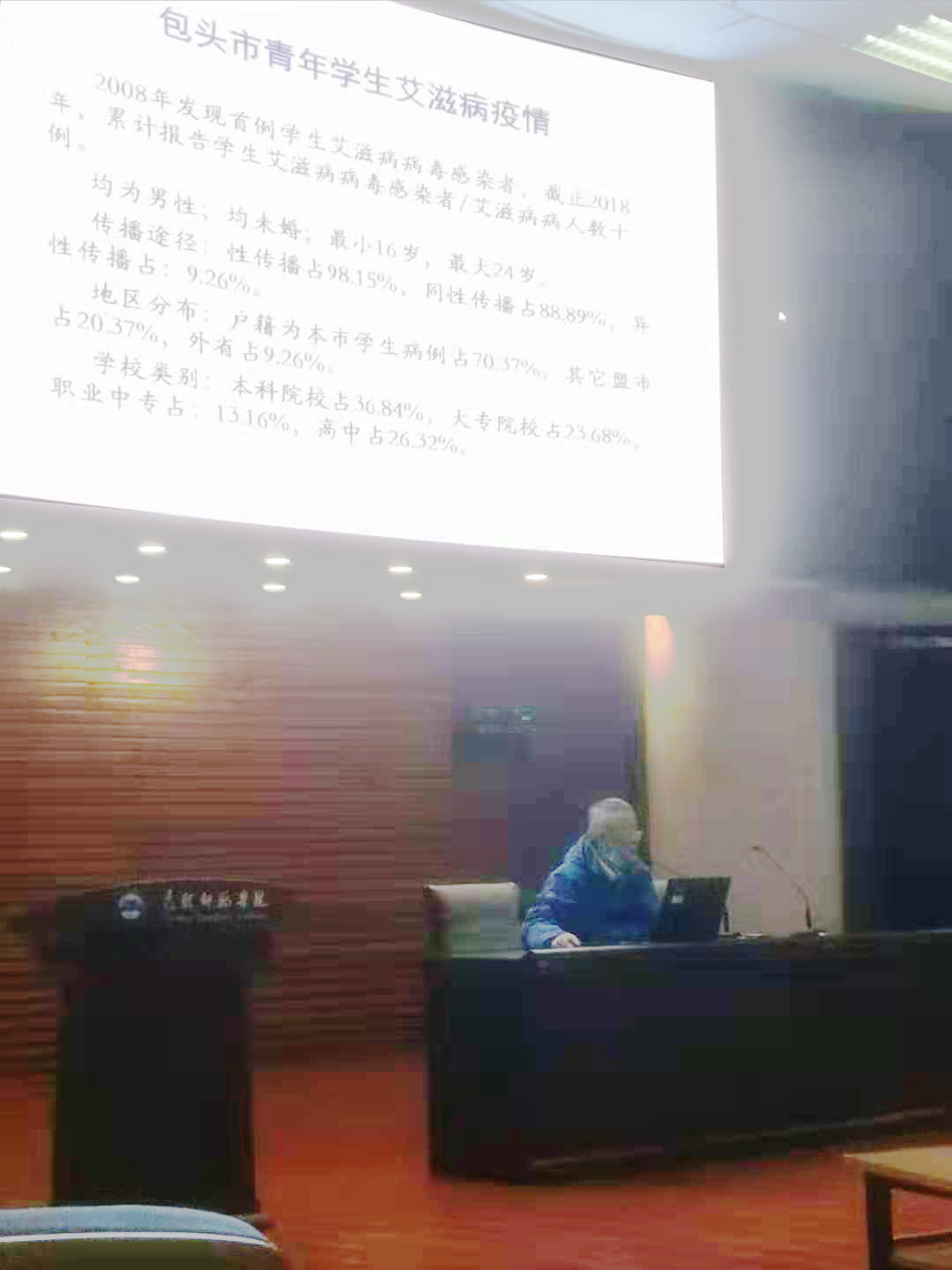 每年的12月1日是“世界艾滋病日”,今年是第33个世界艾滋病日,主题是“行动起来,向‘零’艾滋迈进”。按照包头市卫计委、包头市教育局的统一部署,我校开展了以预防艾滋病为内容的宣传活动。此次活动受到学校各级领导的重视,得到包头市疾病预防控制中心和学校各部门的大力支持。在征得学工部和保卫处同意并办理相关手续之后,校医院联合宣传部、团委、学工部等诸多部门,为我校学生举办了一次艾滋病相关知识的健康教育讲座,并邀请有关知名专家前来讲解。