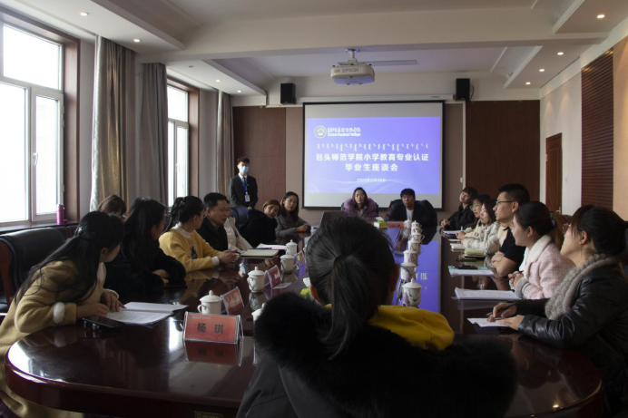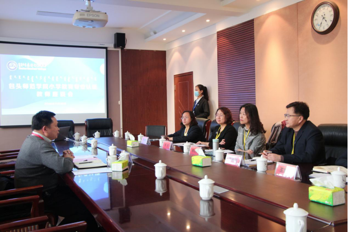 见面会上,金桩院长代表学校全体师生,对专家组的到来表示热烈的欢迎和衷心的感谢,并简要介绍了学校的办学历史和师范教育特色工作基本情况。金桩院长表示,师范教育是我校的传统和特色,六十多年来,我校一直承担引领内蒙古西部师范教育事业发展的重任,始终将师范教育作为办学根基和立校之本,培养的毕业生大部分扎根于基础教育战线教书育人,为包头市、自治区乃至西部地区基础教育事业发展做出了巨大贡献。他指出,教育科学学院作为第一个接受认证的单位,要珍惜机会、全力配合、全力支持专家组的工作,以谦逊的态度接受专家们全方位、立体式的诊断,为全校师范类专业接受认证做好“范本”。全校师范类专业单位要通过专家组的权威指导,举一反三、深刻反思,对“学生中心、产出导向、持续改进”的认证理念,进一步认识深、理解透、把握准,坚持以新的发展理念谋划师范教育发展,全面提高我校师范类专业人才培养质量,为实现学校第三次党代会确定的“建设教师教育特色鲜明、多学科协调发展、服务地方能力较强的高水平师范院校”目标而努力奋斗!