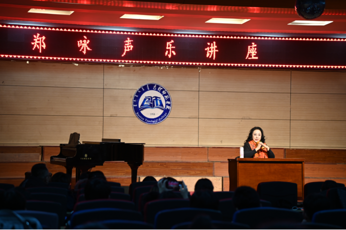 应我校首届美育教育暨第五届音乐节组委会邀请,我校客座教授、著名女高音歌唱家郑咏老师于12月3日下午在音乐学院博艺厅展开了一场精彩的声乐讲座。