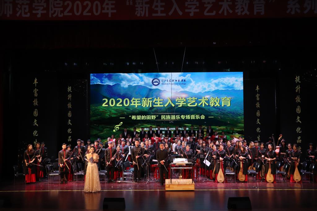 10月21日至12月1日,我校举办了2020年“新生入学艺术教育”系列活动。本次活动历时1个多月,共举办8场演出,表演形式涵盖交响乐、交响管乐、中国民乐、舞剧等,内容涉及爱国主义歌曲演唱,优秀民族歌曲表演,世界经典交响乐演奏,抗疫舞台剧演绎和中华传统名著组曲演绎等。受邀参演的乐团、舞团演员共140余人,我校乌兰牧骑参加演出的师生90余人。2020级全体新生分批次接受了新生入学艺术教育。