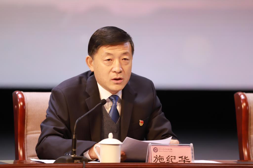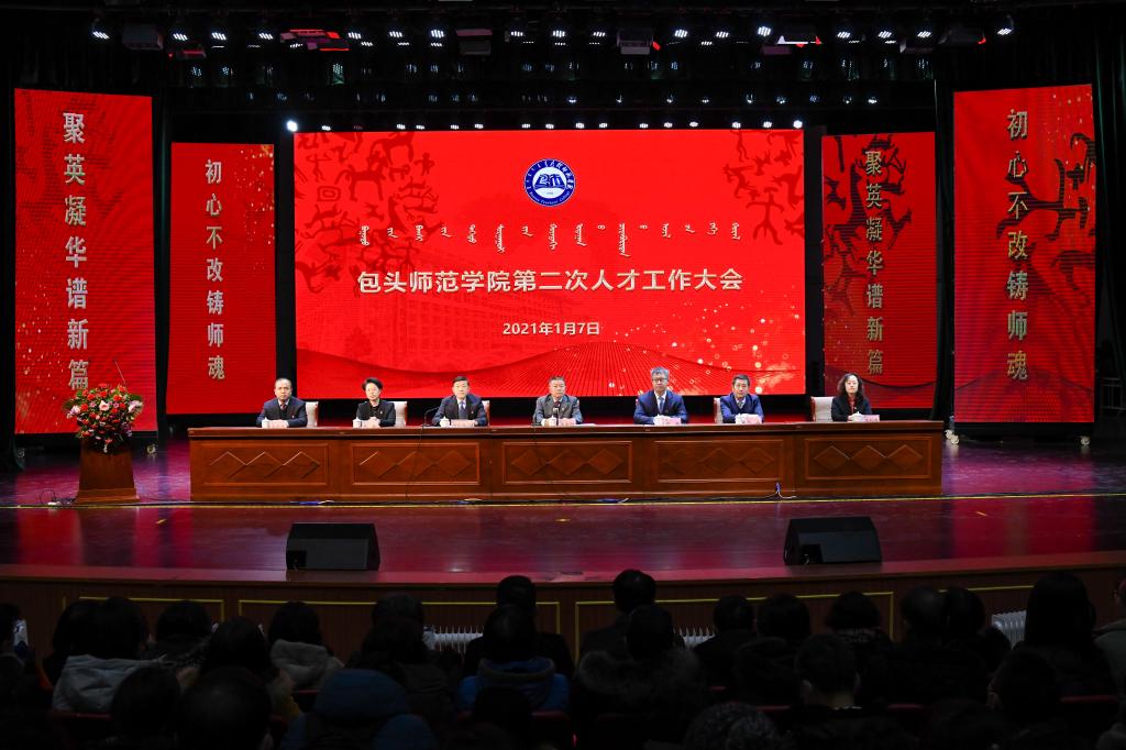 聚英凝华谱新篇,初心不改铸师魂。2021年1月7日下午,我校第二次人才工作大会在会堂隆重召开。校领导王永明、金桩、施纪华和双山出席会议,全校副高级以上专业技术人员、科级以上干部及2019、2020年入职的全体教师参加会议。会议由校党委副书记施纪华主持。