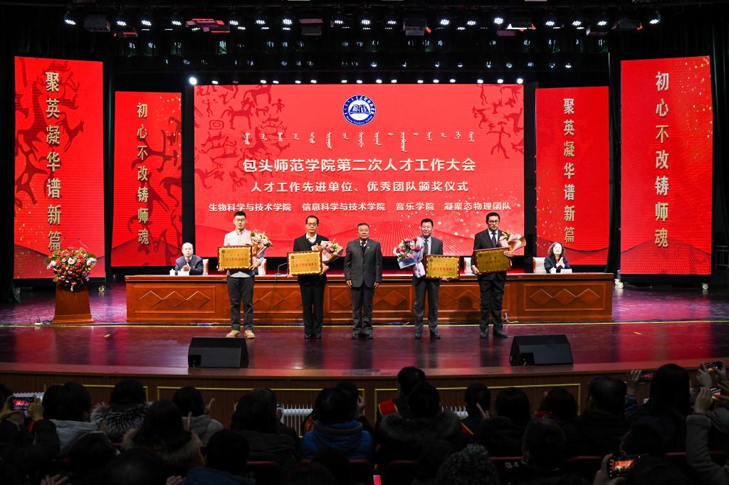校党委书记王永明为“人才工作先进单位”和“优秀团队”颁发奖牌。