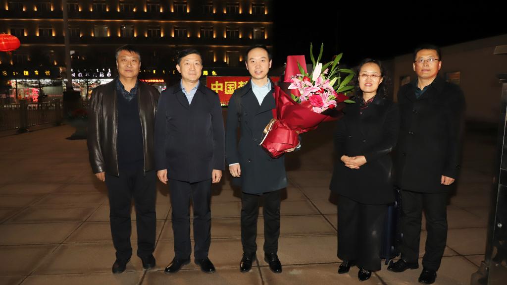 3月12日晚,出席十三届全国人大四次会议的全国人大代表、我校音乐学院副教授、民革会员、男高音青年歌唱家马春雨老师圆满完成使命,乘高铁回包。校党委副书记施纪华,党委委员、统战部部长张彩霞、音乐学院党总支书记赵玉强和统战部副部长李培欣迎接马春雨老师履职归来。