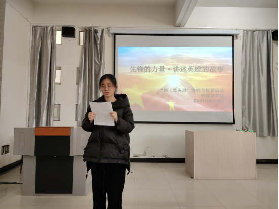 4月3日下午,我校外国语学院在新逸夫楼组织开展“先锋的力量·讲述英雄故事”主题线下交流会。同学们缅怀先辈,重温先烈英雄故事,在讲述过程中几度哽咽,感慨万分。此次活动让身处和平年代的青年学子们再次铭记为国家独立、民族自强、人民幸福生活而前仆后继的革命先烈浴血奋战的事迹,使同学们民族自豪感倍增,深感今天的幸福生活来之不易。
