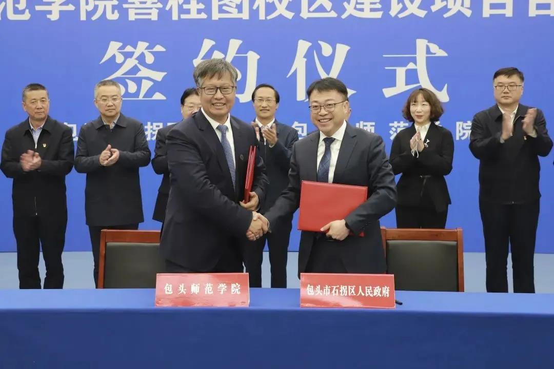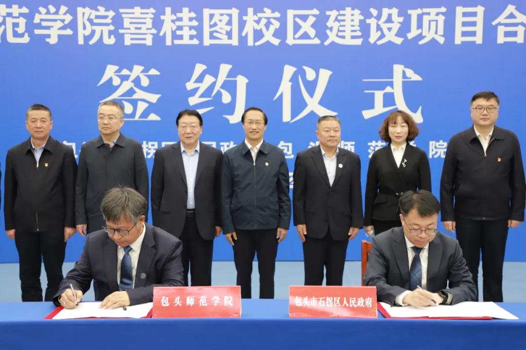 现场,金桩院长与李智副区长分别代表包头师范学院和石拐区人民政府签署了包头师范学院喜桂图校区建设项目合作协议。市直有关部门、石拐区有关负责人共同见证签约。