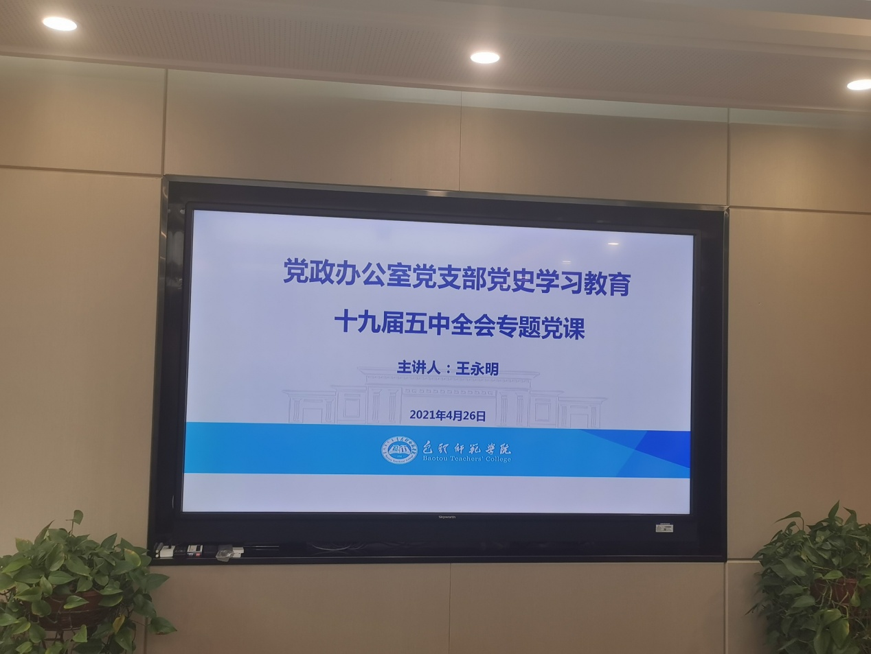 为进一步推动我校党史学习教育走深走实,4月26日下午,校党委书记王永明在办公楼第三会议室以《进入新时代 开启新篇章》为题,为党政办公室党支部全体党员讲授了一堂生动深刻的专题党课。党政办公室党支部全体党员参加学习。