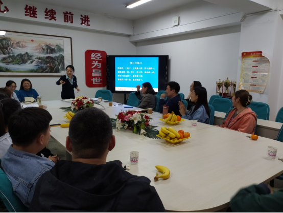 在国家通用语言文字学习环节,经济与管理学院党总支书记李灵芝带领在场的老师们、同学们一起练习普通话的吐字发音,通过平翘舌音等的区分练习,让大家感受普通话发音的规范;通过绕口令,让大家感受普通话的趣味;通过口语的轻声、儿化音感受普通话的生动。老师与同学们一起逐一练习,互相纠正。格副校长、张彩霞部长、薛志东部长、赵洪宝副书记带头做发声练习,同学们积极参与,引来阵阵鼓励的掌声。活动中,师生一起做起了“传话”“口令”游戏,大家手舞足蹈、不亦乐乎。
