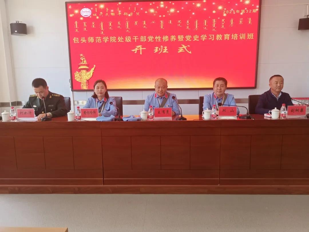 2021年5月8日,我校处级干部党性修养暨党史学习教育培训班在鄂尔多斯市城川民族干部学院开班。学校党委委员、副校长王有亮、双山、格根哈斯,城川民族干部学院副院长刘树泉出席开班仪式。全校57名副处级以上干部参加第一期培训。