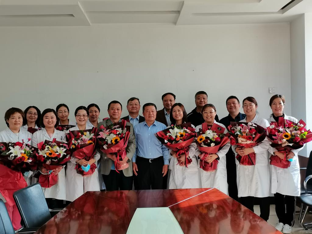 “大家辛苦了!祝大家节日快乐!”王永明同志的一声声亲切问候和送到每一位医护人员手中的一束束鲜花,是学校对白衣天使工作的肯定和赞扬。