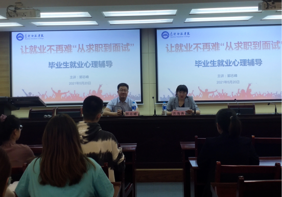 近些年,就业问题一直是困扰大学毕业生的一大难题。面临毕业和就业,即将走出象牙塔的毕业生或多或少会有些不知所措,不知如何走进社会,开启人生的下一阶段。我校招生就业处和心理咨询中心针对这类普遍存在的问题,结合我校以师范生为主的就业工作实际,深入走访调研毕业生,了解到学生迫切需要具体的就业心理和方法的指导。为此,招生就业处联合心理咨询中心举办就业指导专题讲座。讲座于5月20日下午在图书馆602报告厅举办,由招生就业处副处长苏海燕主持,心理咨询中心郭志峰老师主讲,我校各学院毕业生均踊跃参与、认真聆听。