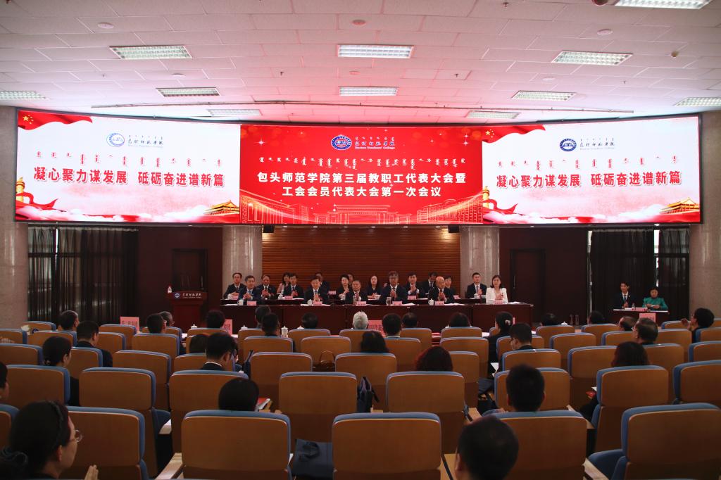 5月28日上午,包头师范学院第三届教职工代表大会暨工会会员代表大会在博学楼学术报告厅隆重召开。154名正式代表、10名特邀代表和46名列席代表出席会议。校党委书记王永明、党委副书记施纪华分别主持预备会议和第一次全体会议。