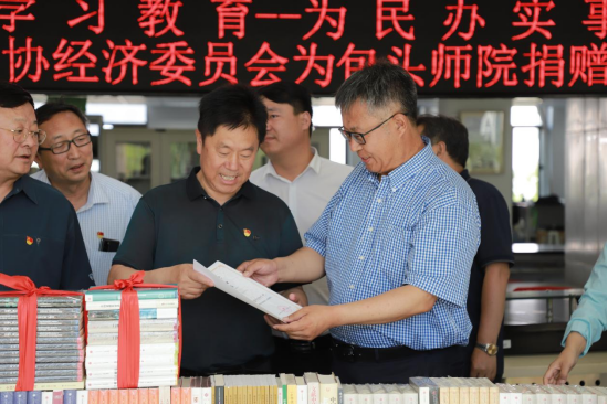 6月18日下午,内蒙古自治区政协经济委员会为我校捐赠图书活动在图书馆二楼举行。自治区政协经济委员会分党组书记、主任周耀亭一行为我校捐赠了政治、经济、文学等类书籍共计200余册,金桩校长向周耀亭书记颁发了捐赠证书。包头市政协副主席李新春、校党委副书记施纪华参加了捐赠活动。活动结束后,政协经济委员会领导一行参观了我校图书馆古籍库。值此喜迎建党100周年,全党开展党史学习教育之际,自治区政协经济委员会开展的为民办实事图书捐赠活动,把关怀和温暖送到了我校,以实际行动体现了“学党史、悟思想、办实事、开新局”的要求。(图书馆)