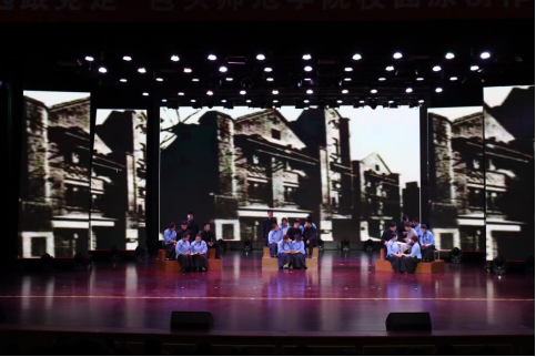 展演以情景剧、舞蹈、话剧、歌曲、画展等多种形式呈现了中国共产党百年来的峥嵘岁月和不屈信念。舞蹈《五四风雷》回顾那段舍生忘死、浴血奋战的历史,舞出一首荡气回肠的战歌;党史情景剧《绣红旗》重现前辈们冲破黎明前的黑暗,绣红旗,用鲜血和生命呼唤新中国的红岩精神;话剧《我们的青年时代》由一百年前的先锋队和一百年后的主力军共同谱写了一曲赤子之歌;独唱《阳光雨露》唱出了中国共产党如阳光雨露一般滋润着华夏大地,指引着中国人民伟大梦想的航船,乘风破浪、坚毅前行。《长征》《德润春天》《额吉-都贵玛》……一曲曲旋律、一段段故事不仅体现了中国共产党人的初心,也浸透着全校师生“永远跟党走”的坚定信念。