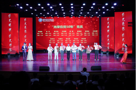 百年征程波澜壮阔,百年初心历久弥坚,一生耕耘桃李芬芳,不负使命壮怀依旧。展演期间还举办了“光荣在党50年”纪念章颁发仪式,为我校“光荣在党50年”的15名老同志代表颁发了纪念章,感谢他们为党、为党的教育事业做出的不可磨灭的贡献。新党员为他们献上鲜花,校党委书记王永明为他们颁发“光荣在党50年”纪念章,他们是全校师生党员的榜样,激励着大家更加坚定理想信念,砥砺对党的赤诚忠心,在新时代教育事业的新征程中,书写包师人勇担使命的崭新篇章!