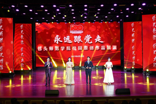 百年征程波澜壮阔,百年初心历久弥坚;百年岁月光辉璀璨,百年精神赓续传承。我校“永远跟党走”校园原创作品展演6月29日在会堂隆重举行。全体校领导和全体师生党员一起观看了展演,共同回顾党的辉煌历史和伟大民族精神,庆祝伟大的中国共产党诞辰100周年。
