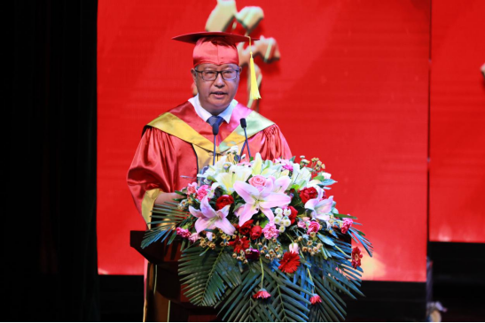 他祝愿各位毕业学子每一次困难都能举重若轻,每一次孤独都有心中共鸣,山野皆有雾,漂泊亦能归舟,所遇皆良善,所行化坦途。在往后的日子里,乘风破浪、前程似锦!