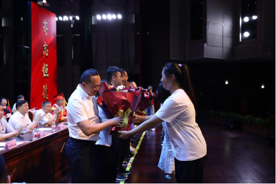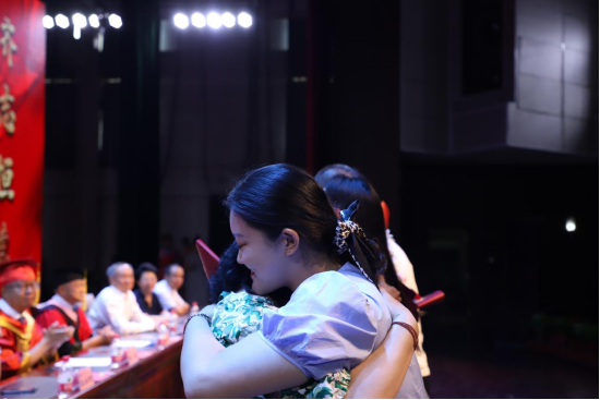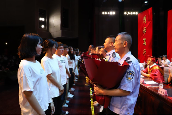 父母是孩子的第一任老师,孝敬父母、懂得感恩,是中华民族的传统美德。毕业生为来到现场的家长献上鲜花,感恩父母给予自己生命,哺育自己成长,感谢父母的养育之恩。