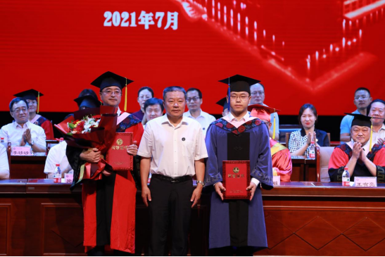 七月流金似火,青春逐梦远航。7月2日9:00,我校2021届毕业典礼暨学位授予仪式在会堂隆重举行。全体校领导及学校学位评定委员会委员、毕业生代表、家长代表、硕士生导师、全校副处级以上干部、学工办主任、团总支书记、辅导员、班主任、教师代表参加仪式,共同见证同学们的高光时刻,分享他们收获的喜悦,并向他们表示最衷心的祝福和最美好的祝愿。仪式在嘹亮的国歌声中正式开始。