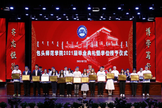 校党委副书记施纪华宣读了《自治区级“三好学生”“优秀学生干部”“优秀毕业生”“优秀班集体”名单》、《包头师范学院关于表彰2020—2021学年度校级“三好学生”“优秀学生干部”“优秀毕业生”“优秀班主任”“优良学风班集体”“优秀宿舍”的决定》;宣读《包头师范学院关于颁发科技学术奖的决定》和《包头师范学院关于颁发2021年应届考取博士专项奖的决定》。
