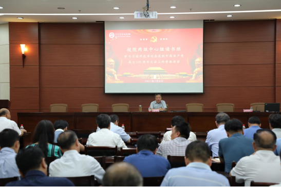 7月8日,我校校院两级中心组学习习近平总书记“七一”重要讲话精神读书班开班,全体校领导及全校副处级以上党员、干部参加。校党委书记王永明主持开班仪式,并领学了“习近平总书记在‘七一勋章’颁授仪式上的讲话”和“习近平总书记在中国共产党与世界政党领导人峰会上的主旨讲话”。