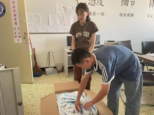 二级学院代表学校向同学们发放口罩,并转达了学校的关怀。希望同学们用好口罩,加强防护,战胜疫情,努力学习,取得防疫、学习双丰收。