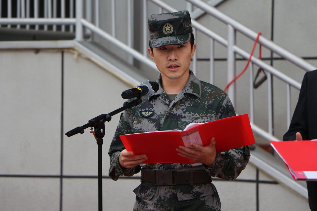 升国旗仪式后,文学院2021级新生王艺翔同学代表全体参训学员作表态发言。