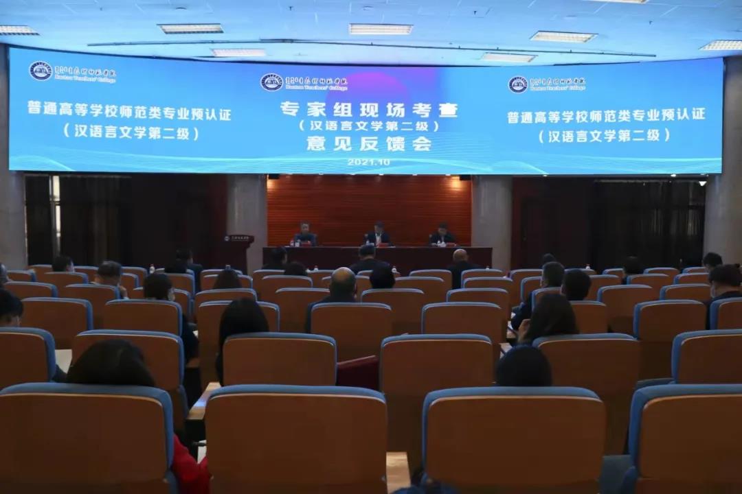 9日下午在反馈会上,专家组成员分别反馈了考查意见和建议,肯定了我校汉语言文学专业的优势特色和成绩亮点,认为学校和文学院高度重视师范类专业认证工作,专业认证、自评自建工作富有成效。同时也指出了我校师范专业认证准备工作和专业建设中存在的不足,希望学校进一步深入领会认证理念,以问题为导向,不断提高专业建设水平和人才培养质量。