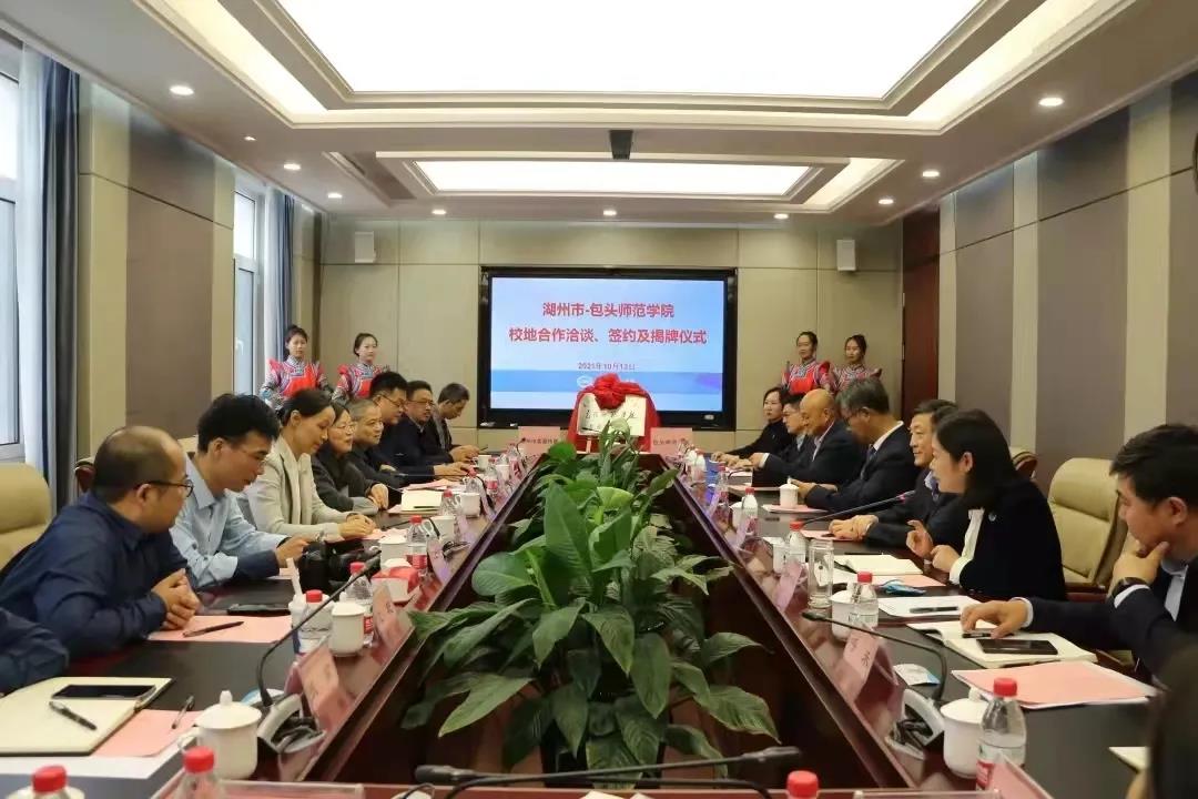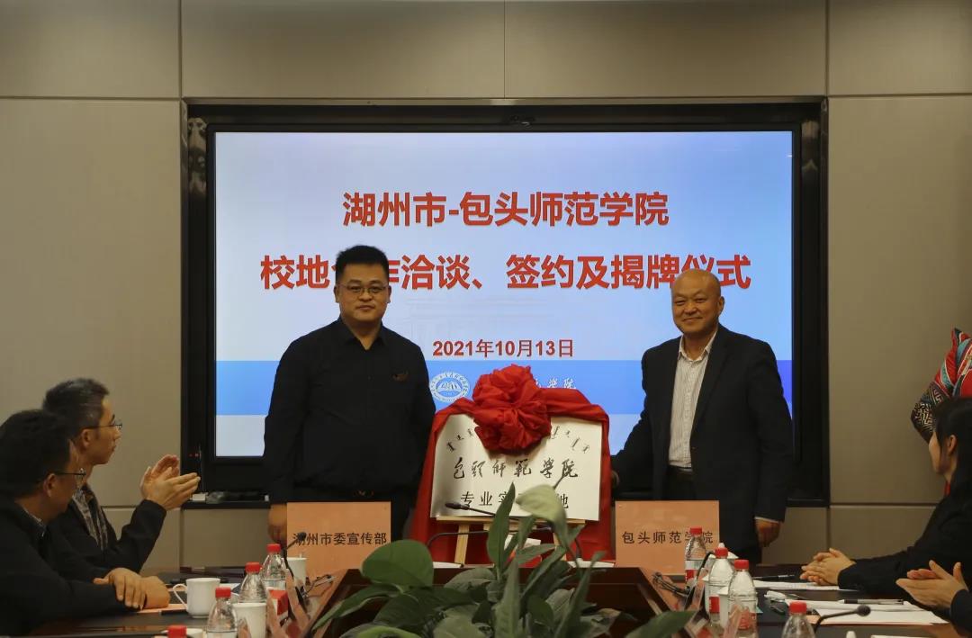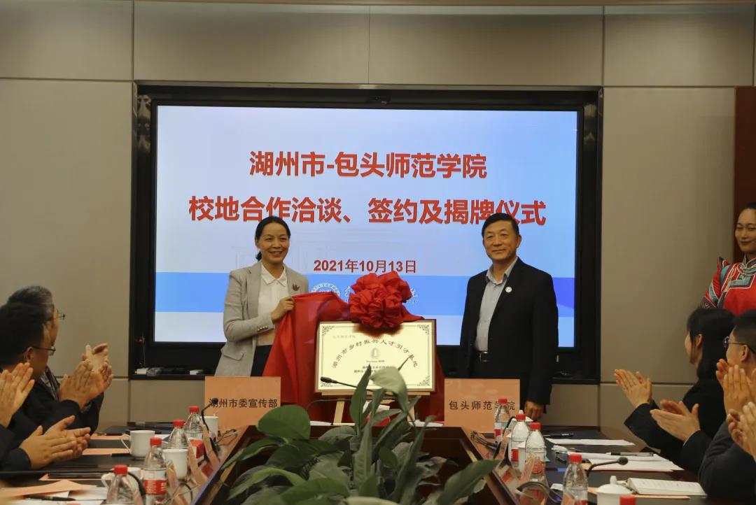此次签约仪式上,双方共同见证了湖州市文化人才引才基地、湖州市乡村振兴人才引才基地、包头师范学院专业实习基地的揭牌亮相。(招生就业处)