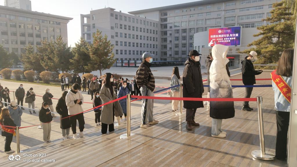 为确保核酸检测工作顺利、安全、有序、高效完成,达到“应检尽检、不漏一人”的要求,学校在核酸检测现场设置多个检测点,对综合服务保障人员、参加教师资格证考试的学生进行分类、分批次检测,通过制定实施细则,精心组织,确保参检人员能够按照规定时间、路线进行检测。检测过程中师生员工全程佩戴口罩,自觉间隔1米排队等候,经过信息采集后,圆满完成核酸检测,检测结果全部为阴性。
