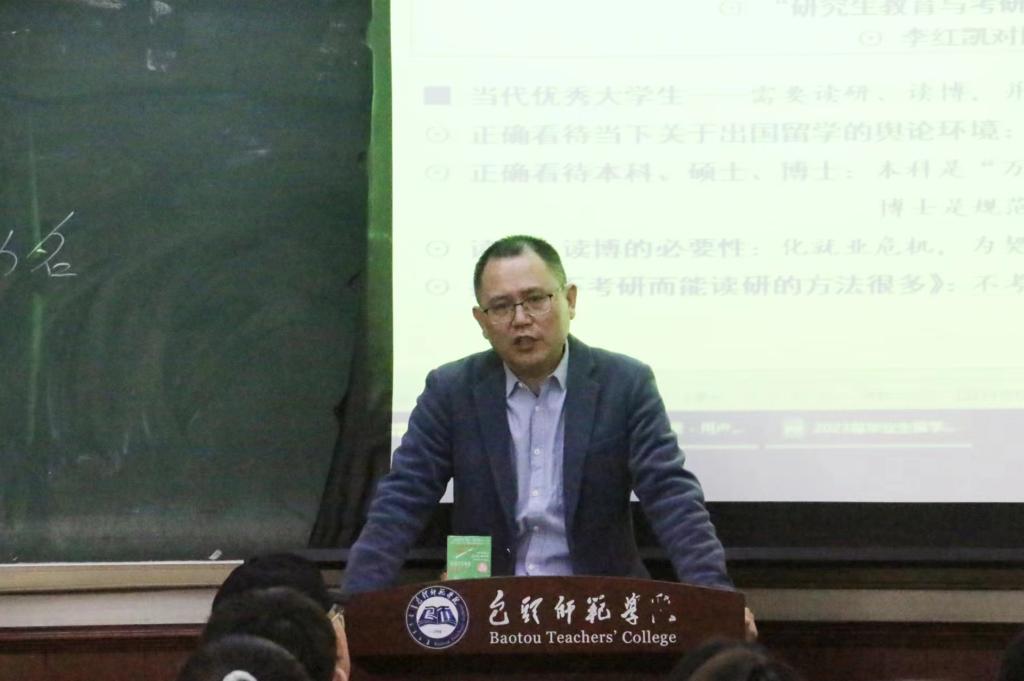 李博士表示出国留学能帮助我们提升国际视野,开拓眼界,并鼓励同学们提升学历,夯实本领,以更好的姿态服务社会。