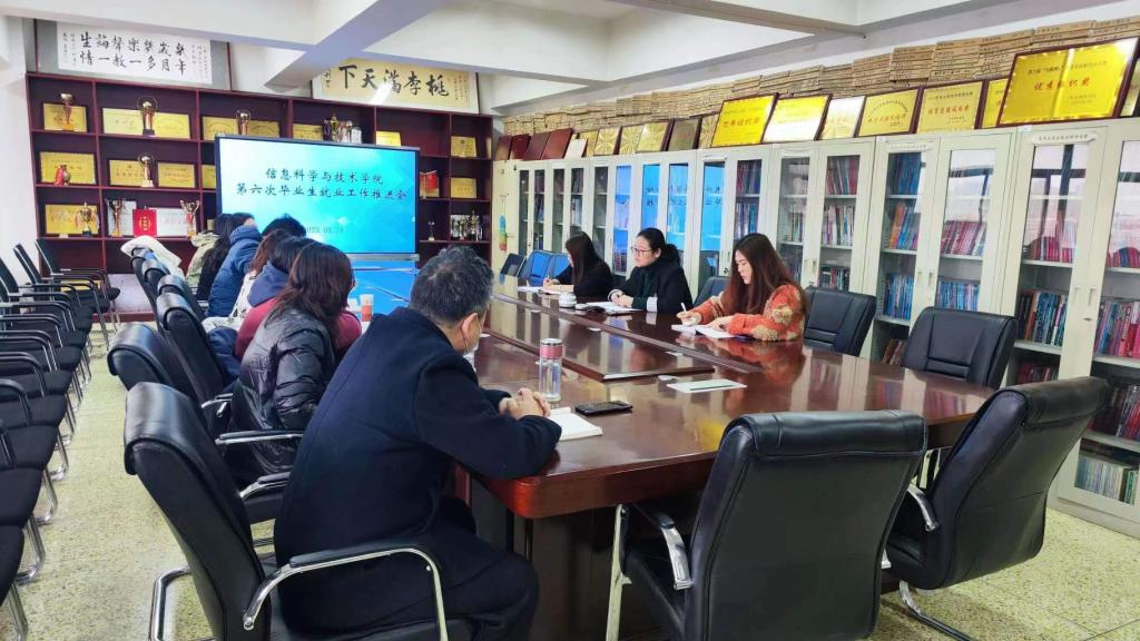 3月24日,信息学院在710会议室组织召开了第六次毕业生就业工作推进会,学院就业工作领导小组成员及毕业班、校企合作班班主任参会,会议由党总支副书记董海燕老师主持。