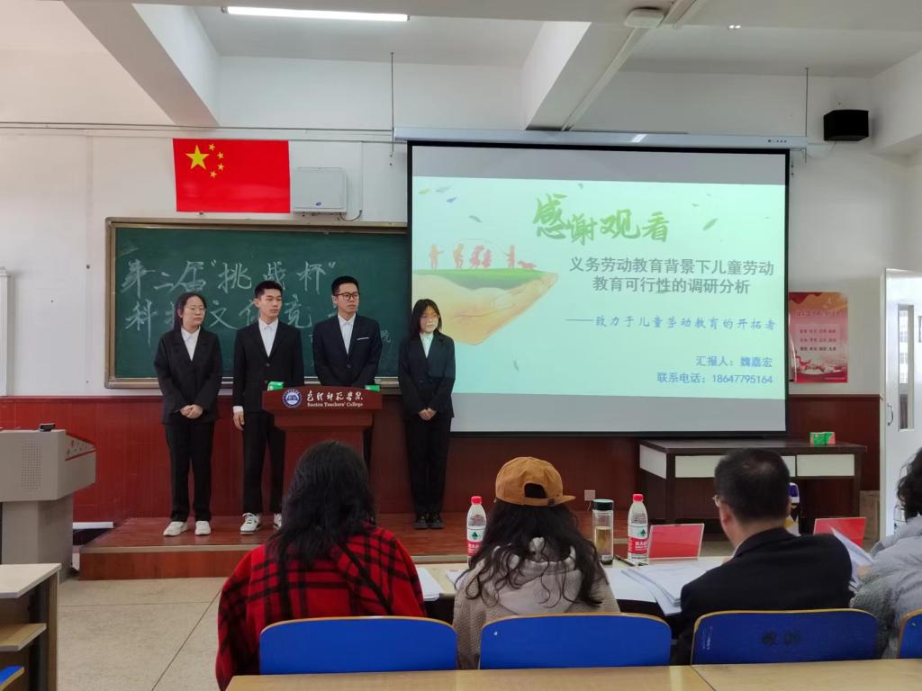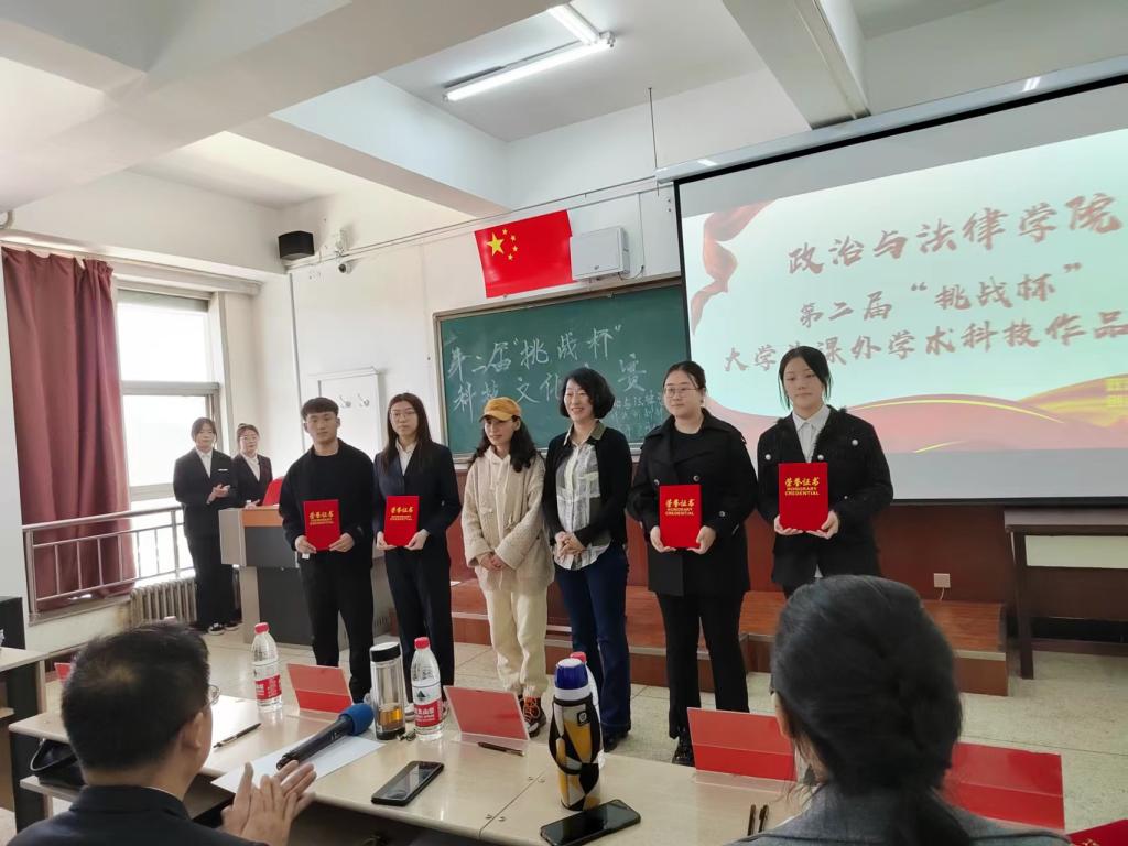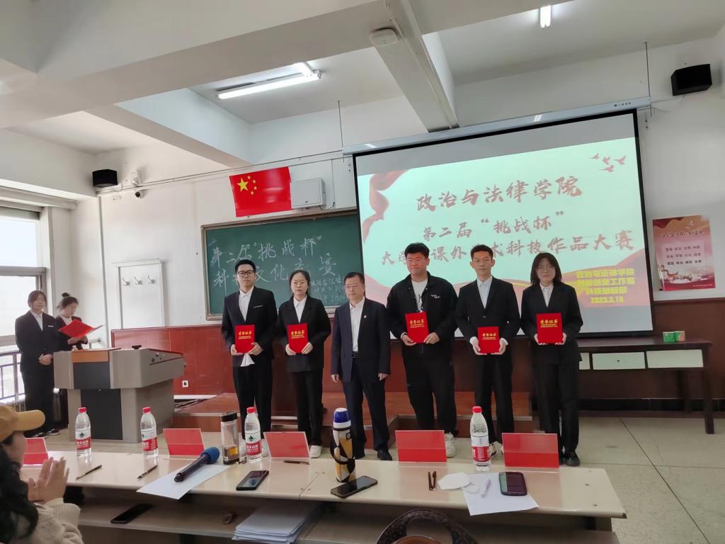 为贯彻落实党的二十大精神,深入实施科教兴国战略、人才强国战略、创新驱动发展战略,培养及提高学生的创新精神和实践能力,促进高校学生课外学术科技活动的蓬勃开展,3月18日上午,政治与法律学院在博学楼600教室举办了第二届“挑战杯”大学生课外学术科技作品大赛。学院党总支副书记郭宏升、团总支书记袁爱荣老师、政治学与行政学系主任马慧、社工系博士任泽、辅导员白丽担任本次大赛的评委。来自四个年级的12支代表队参加了本次比赛,大一大二派学生代表观看了比赛。
