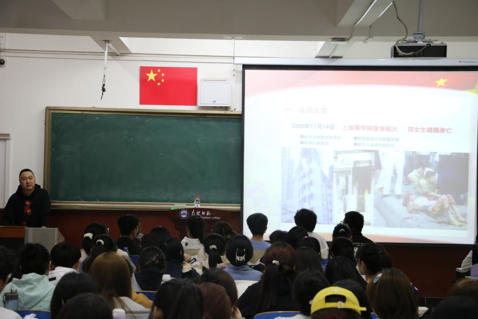 讲座开始,高峰老师带领同学们了解火灾的基本知识,结合图片、视频,详实讲述火灾事故案例,用真实事件为同学们敲响消防安全警钟。随后,高峰老师围绕火灾事故发生时,如何及时报警、如何正确逃生等方面进行详细解说,提醒同学们注重保护自身安全,不贪恋财物。最后高峰老师强调,增强防灾减灾意识、学习应急知识、掌握自救技能是每个人不可或缺的必修课,希望同学们做到将消防安全牢记于心,时刻保持忧患意识。