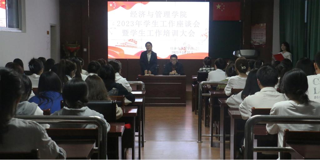为进一步贯彻落实以学生为中心,加强我院学工建设,促进新学期各项学生工作有序开展。3月31日晚7点,经济与管理学院于新逸夫楼召开学生工作座谈会暨学生工作培训大会。学工办主任陈丽芳老师、辅导员曹瑞老师,院学生会、各年级班长及团支书参加会议。
