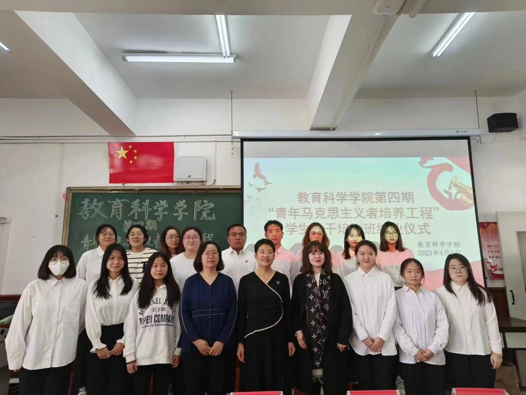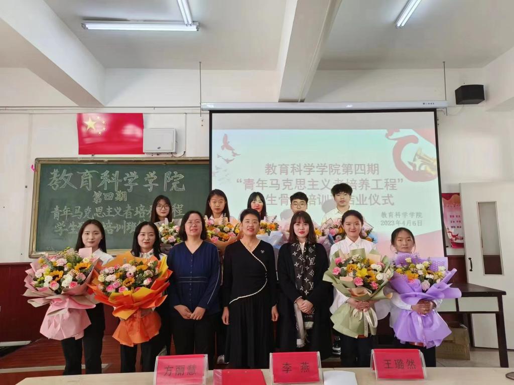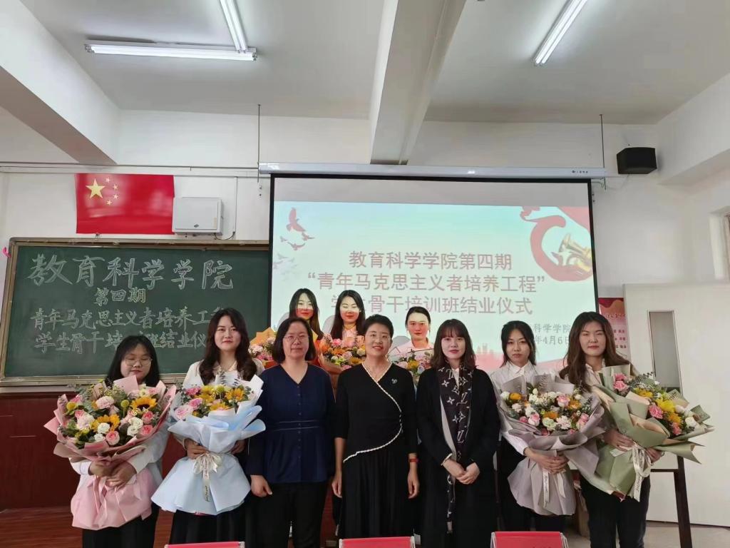 为深入学习贯彻党的二十大精神和习近平总书记关于青年工作的重要思想,落实《中长期青年发展规划(2016—2025年)》文件要求,为党培养信仰坚定、能力突出、素质优良、作风过硬的学生骨干,教育科学学院自2022年11月29日组织开展了第四期“青年马克思主义者培养工程”学生骨干培训班。学院通过专题讲座、影视教育、知识竞赛和素质拓展等多种培训形式,已顺利完成全部培训内容,于4月6日下午在博600举行了教育科学学院第四期“青年马克思主义者培养工程”学生骨干培训班结业仪式。党总支副书记李燕、团总支书记方丽慧、辅导员王璐然、学生干部代表及141名参训学员参加了结业仪式。