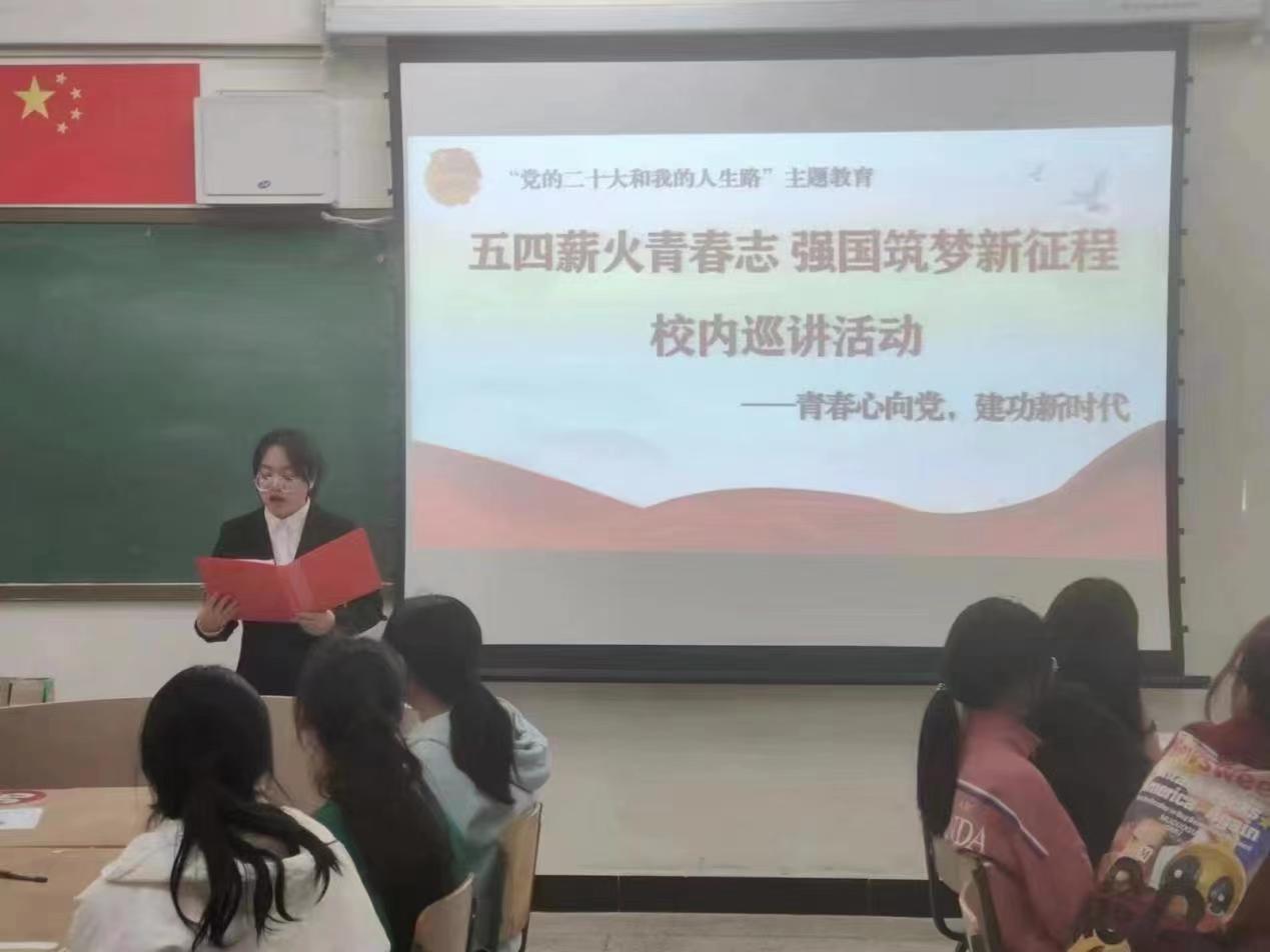 在五四青年节到来之际,为激励我院青年学生继承发扬“五四精神”,展现青年敢于担当、奋发向上的精神风貌。4月19日,大学生形势政策教育校宣讲团以青年面对面、青年引领青年的形式,深入外国语学院2021级和2022级开展宣讲活动。