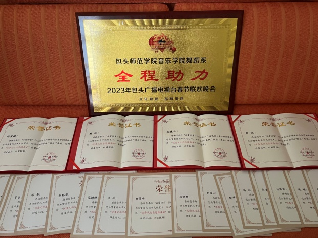 近期,包头市广播电视台将“全程助力2023年包头广播电视台春节联欢晚会”的牌匾送与音乐学院舞蹈系。
