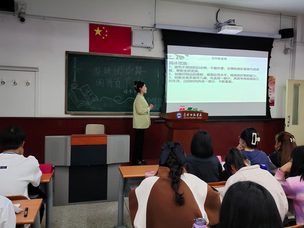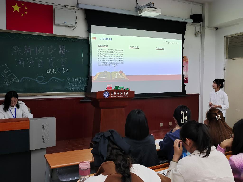 4月23日是世界读书日,为激发同学们的阅读热情,提升同学们的阅读能力,鼓励同学们养成爱读书、读好书、善读书的习惯,营造良好的阅读氛围,教育科学学院于4月20日晚7点在博西103举办“深耕阅读路,闻得百花香”读书分享会。