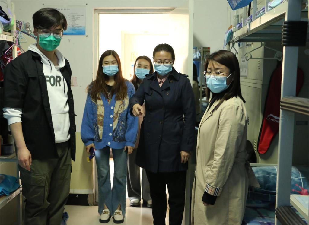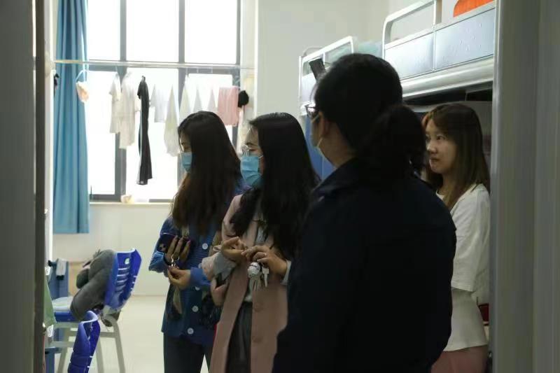 4月23日下午,学院党总支副书记董海燕,学工办负责人姜嘉丽,辅导员王凝、李建霞、亢智鹏老师及学生会主席团成员一行深入学生公寓。